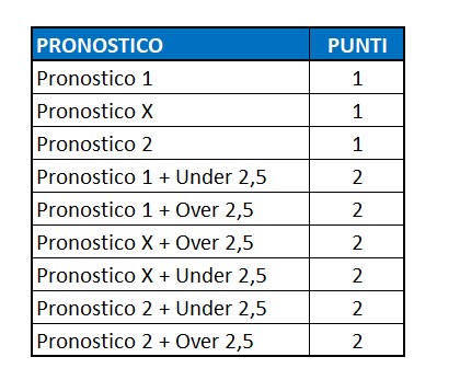 • 1 o 2 Punti per ogni pronostico indovinato;